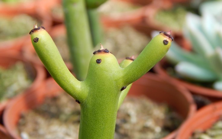 The succulent also has a cristate form and grows rather slowly. It can be lightly fertilised with e.g. cactus and succulent fertiliser. In time, the Madagascar sedge will form a majestic shrub that will impress your neighbours.