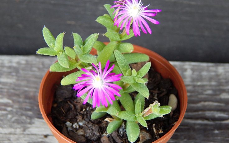 Pod přezdívkou Pickle Plant - okurková rostlina, tento sukulent zaujme atypickými válcovitými listy s bizarními štětinami na koncích. Potěší i výraznými fialovými květy.