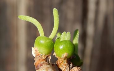 Monilaria is a genus of succulents from South Africa, recognized for its small, cylindrical leaves that often grow in pairs resembling beads or chains. The plants have a modest growth habit but produce small, daisy-like white flowers during the blooming period. Monilaria are hardy, drought-tolerant, and popular among succulent collectors for their unusual, bead-like appearance.