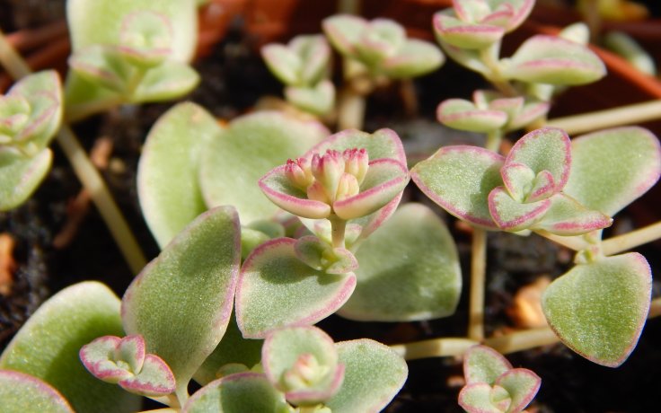Crassula Petite Bicolor is a charming miniature succulent that impresses with its bright colouring and small size. It is a colourful and dwarf form of Crassula pellucida subsp. marginalis from the Southern Cape (which can be found on our e-shop under the name Crassula marginalis). Petite Bicolor is often mistakenly referred to as Sedum Little Missy, so it can occasionally be found under that name.