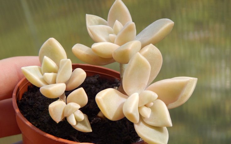 Graptosedum Ghosty is a charming cultivar, probably a cross between Graptopetalum paraguayense and the unknown Sedum species. The pearly colour may be reminiscent of Graptopetalum paraguayense. It is named Ghosty because of its colour and shape, which may resemble a ghost.