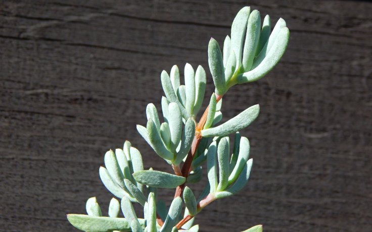 Leaves are blue, narrow, oblong and triangular. The lower leaves of the plant gradually dry out, forming a natural brown stem that thickens over time. The plant grows upright, branches profusely and grows up to 40 cm tall.
