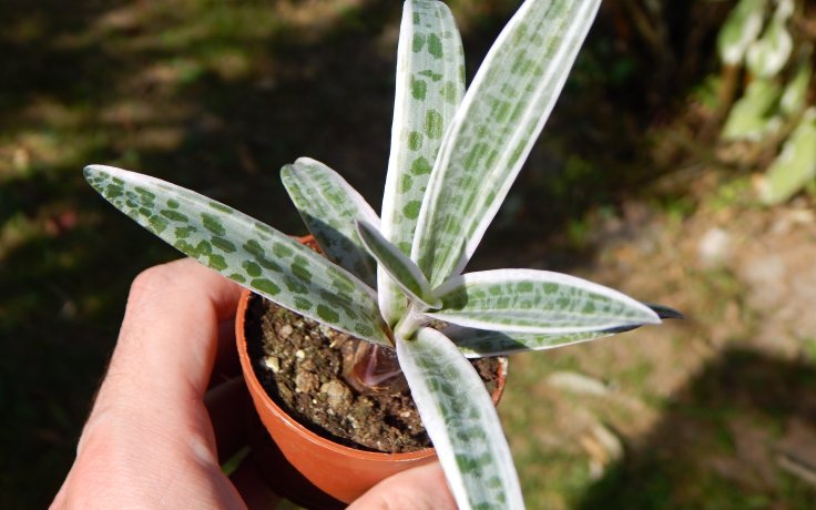 I recommend growing in tighter pots or trays and placing these in a sheltered spot where they can remain all year round. You can tell when it's time to water by the slight flaccidity of the leaves. The plant is very hardy and can tolerate poorer light or temperature conditions and longer periods without watering. Ledebouria socialis variegata is thus an ideal plant for beginners, but even advanced collectors will appreciate its patterns and whitish colouring. In addition, it is quite an unusual plant, which is not found in many people's homes.