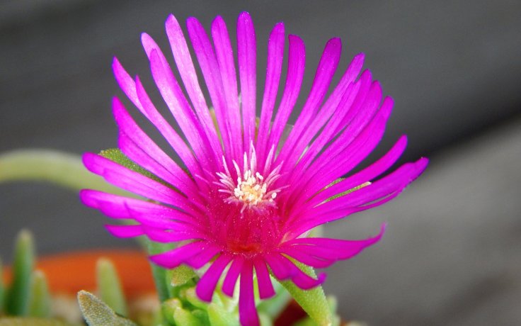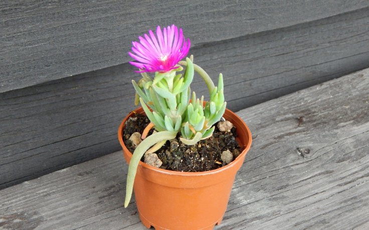 Výrazně protáhlé listy mají na svém povrchu viditelnou buničinu. Listy vyrůstají válcovitého tvaru. Špičky mají načervenalý odstín a celý list může získávat oranžovější zbarvení. Květy se zbarvují do jasně růžovofialové a v průměru mají až 3 cm. Sukulent vyrůstá v trsech, je velice odolný. Tvoří krásné polštáře, které doplňuje svými krásnými květy.