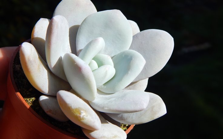 Stonky, listy i květy mají výrazný bílý, voskový povlak, který je na první pohled odlišuje od jiných druhů. Tento povlak rostlinu zároveň chrání před sluncem a suchem.
