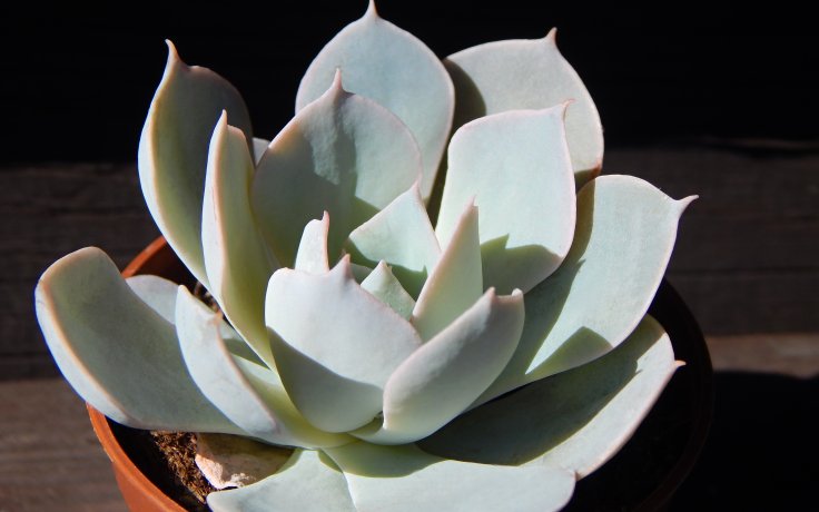 Listy této Echeveria rostou uspořádány do růžic a jsou zbarveny do šedozelené až stříbřitě šedé barvy. Povrch listů pokrývá silná voskovitá vrstva, která jim dodává bílý nádech. V zimě přirozeně zasychá mnoho spodních listů, které je vhodné průběžně odstraňovat. Růžice sukulentu dorůstá v průměru až 12-15 cm.