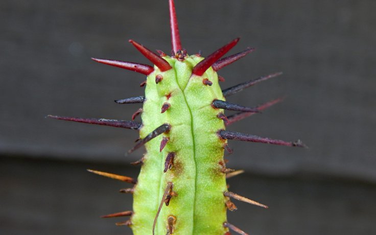 Na rostlině jsou nejhezčí barevné trny. Ty oživují těla rostliny, neboť nenápadné listy velmi rychle opadávají.