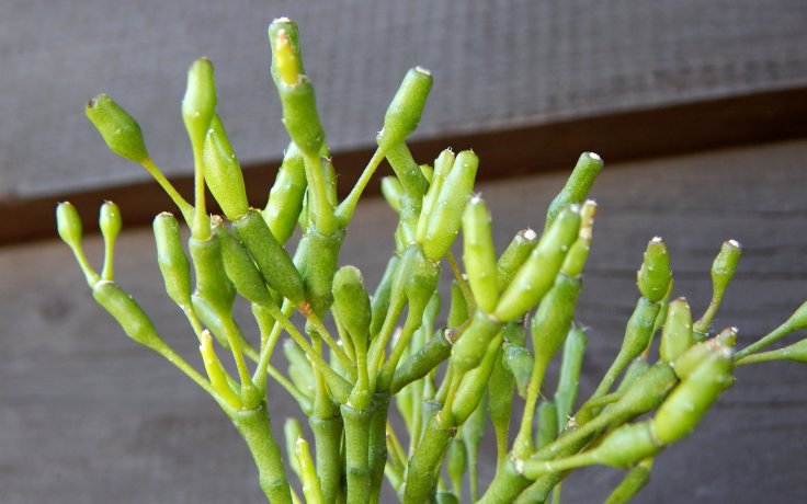 Hatiora salicornioides, dříve známá jako Rhipsalis salicornioides, si vysloužila přezdívku Dancing Bones - Tančící kosti, pro své jemné a estetické stonky, které se vlní a klenou v prostoru.