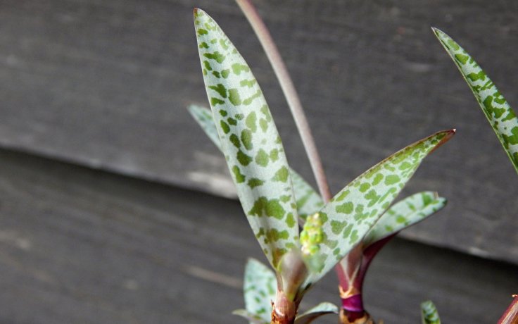Během růstu vytváří skupinky malých cibulek (okolo 2 cm v průměru) ve tvaru slz. Vy však slzy ronit nebudete, protože tento odolný sukulent Vás jen tak neopustí. Z cibulek vyrůstají listy a případně i stopky s květy do výše až 20 cm. Listy jsou z horní strany kropenaté, spodní strana zaujme tmavě fialovým zbarvením s lesklým povrchem.