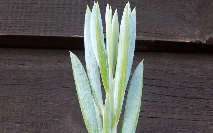 Modrá barva rostliny je zapříčiněna voskovou vrstvou, která ji zároveň chrání před silným slunečním zářením.